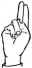 На ћирилици написано КАЋА ДАЧИЋ састоји се из 9 слова [?]. Исписано ћириличном једноручном азбуком за глувонеме: